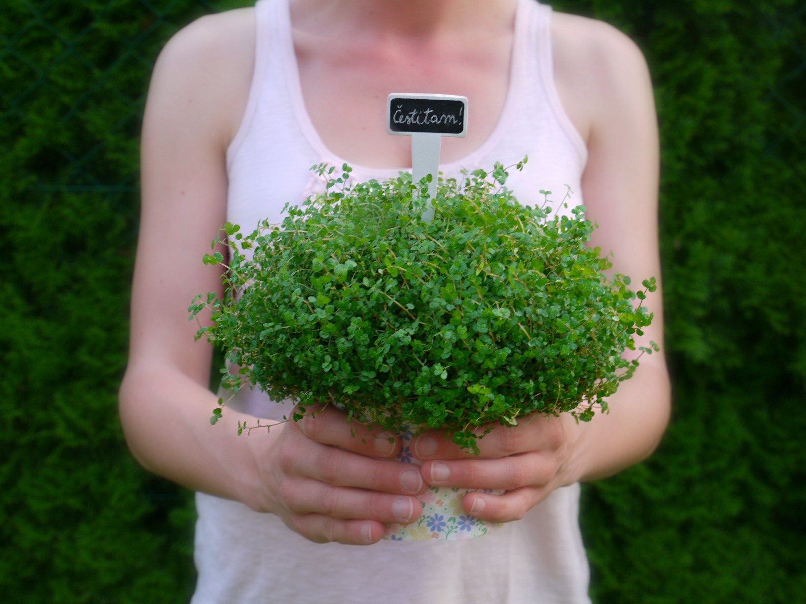 Ustvarjalne ideje Postopek Potrebujemo:Cvetličnemu lončku nadenemo oblekico iz pisanega kartona, na tablico za označevanje pa s kredo napišemo kratko voščilo.