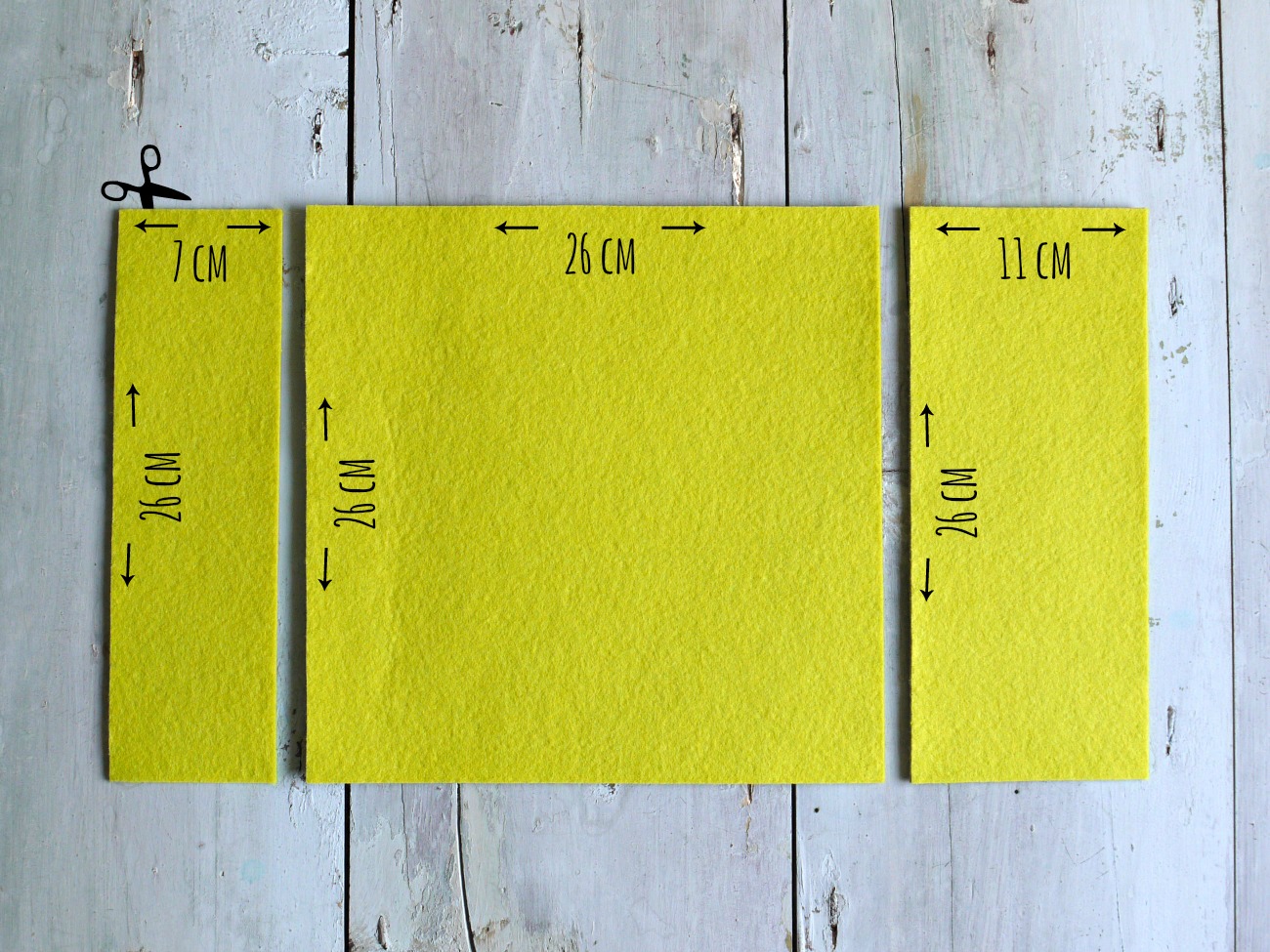 3. Manjša kosa na eni eni od daljših stranic zašijemo. Nato ju položimo na kvadrat in vse tri kose obšijemo po zunanji strani, približno 0,5 cm od roba.