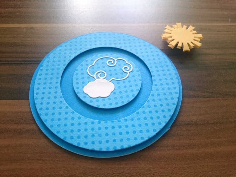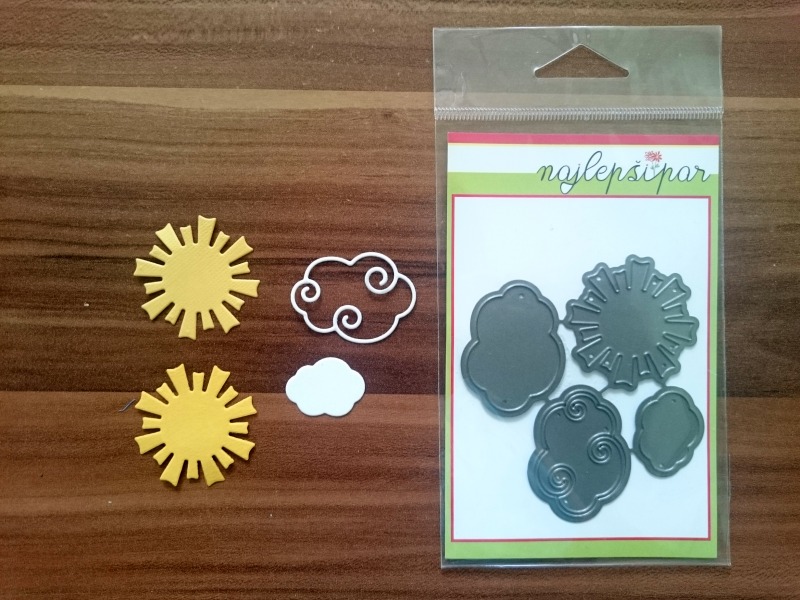 Iz rumenega in belega kartona izrežemo dva sončka in oblake.