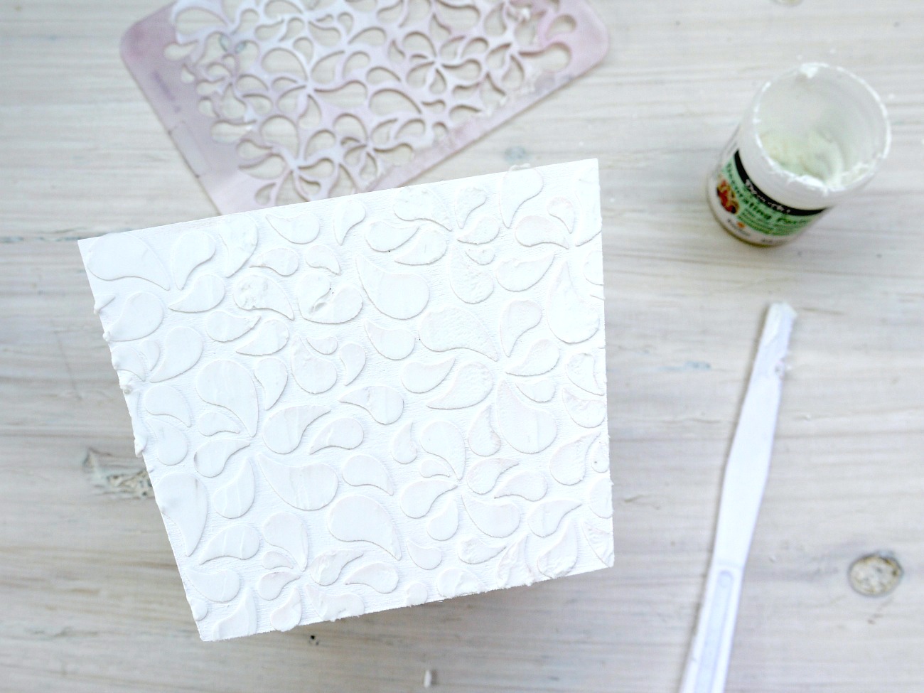Šablono odstranimo in počakamo, da se dekorativna pasta posuši.